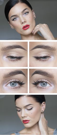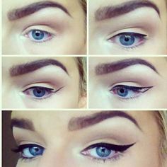 ♦ Maquillaje de ojos: En el día debéis usar tonos más neutros, claros y mates. Alíate con sombras claras, beiges y marrones para que iluminen vuestra mirada. Aplica en el parpado móvil un tono beige, luego en la cuenca un tono más oscuro y por último en el hueso de las cejas un tono más claro, para que le de luminosidad. Si gustáis puedes aplicar el famoso cat eye con un delineador líquido o un khol, para estilizar la mirada. Por último usa una mascara que le de volumen y alargue las pestañas, así abres tu mirada y luces despierta.