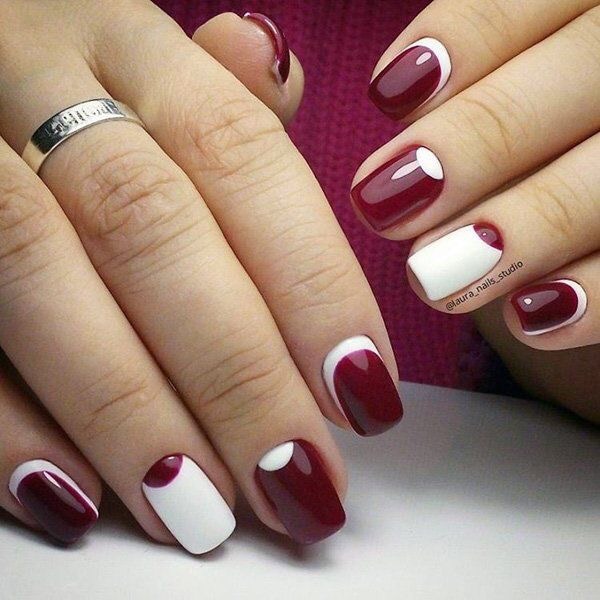 Sin duda alguna una manicura que dejara a todos con la boca abierta! Las medias lunas en Rojo Vino y Blanco son Genuinas! Una moda clásica que se ha amoldado a las exigencias vanguardistas de las Nails Lover.