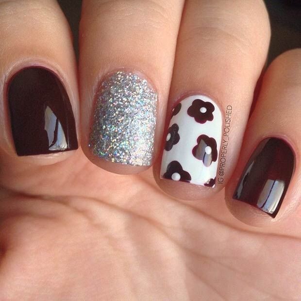 Este Nail Art es ideal para quienes no quieran llevar todas las uñas con mucho brillo, lo más común es Realizar un diseño en el dedo Anular.